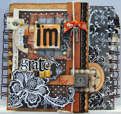 Mini Album: "Right Now I'm Grateful For..." I designed this Zutter-bound mini-album for a class in October. Was supposed to have an autumn 'thanksgiving' kind of feel (to match the theme...) but somehow ended up looking more like Halloween instead....oh well.