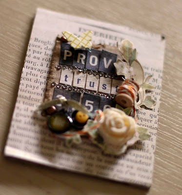 This month's challenge at Scrapforhelp is to recycle the packaging we get with our scrapbooking products. I made this mini shadowbox fridge magnet: